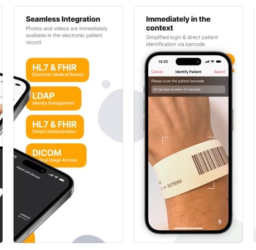 The app integrates deeply with existing hospital EMR, DMS, and PACS systems to make scanned data instantly accessible across workflows.